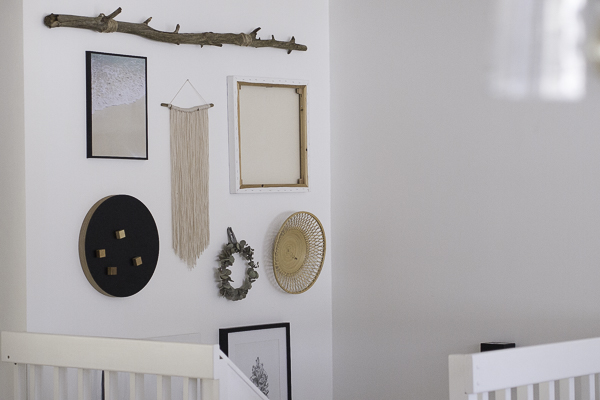 Kunde aldrig bestämma mig vilken färg jag skulle ha målat övrevåningen så väggarna får vara vita tills vidare. Längs med trappan hade jag funderat ett bra tag att göra en tavelvägg av diverse pynt, så när för att få något gjort var det bara att plocka fram stegen och börja placera ut allt jag sparat på mig. Visionen var att placera ut allt lite random och såhär blev resultatet. Naturnära, bohemt och med en smula svarta detaljer.
